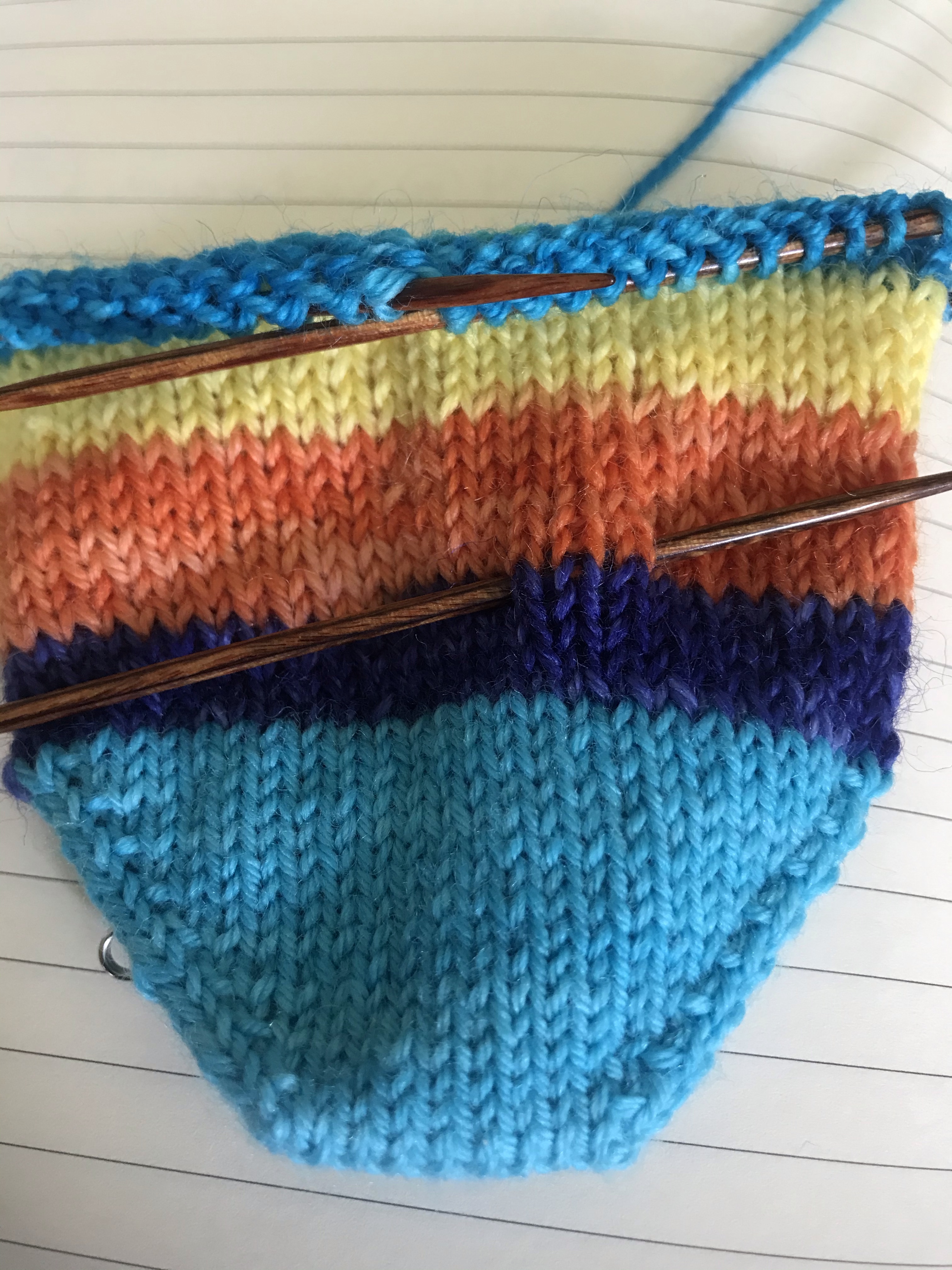 Socks are going strong….need to put the second heel in to finish my March blue stripe socks. First of the rainbow socks also needs the heel, and the second sock is started. With stay at home orders still in effect, there hasn’t been a lot of travel knitting so progress is a little slow. (I have a zoom meeting later….so maybe a few more rounds?)