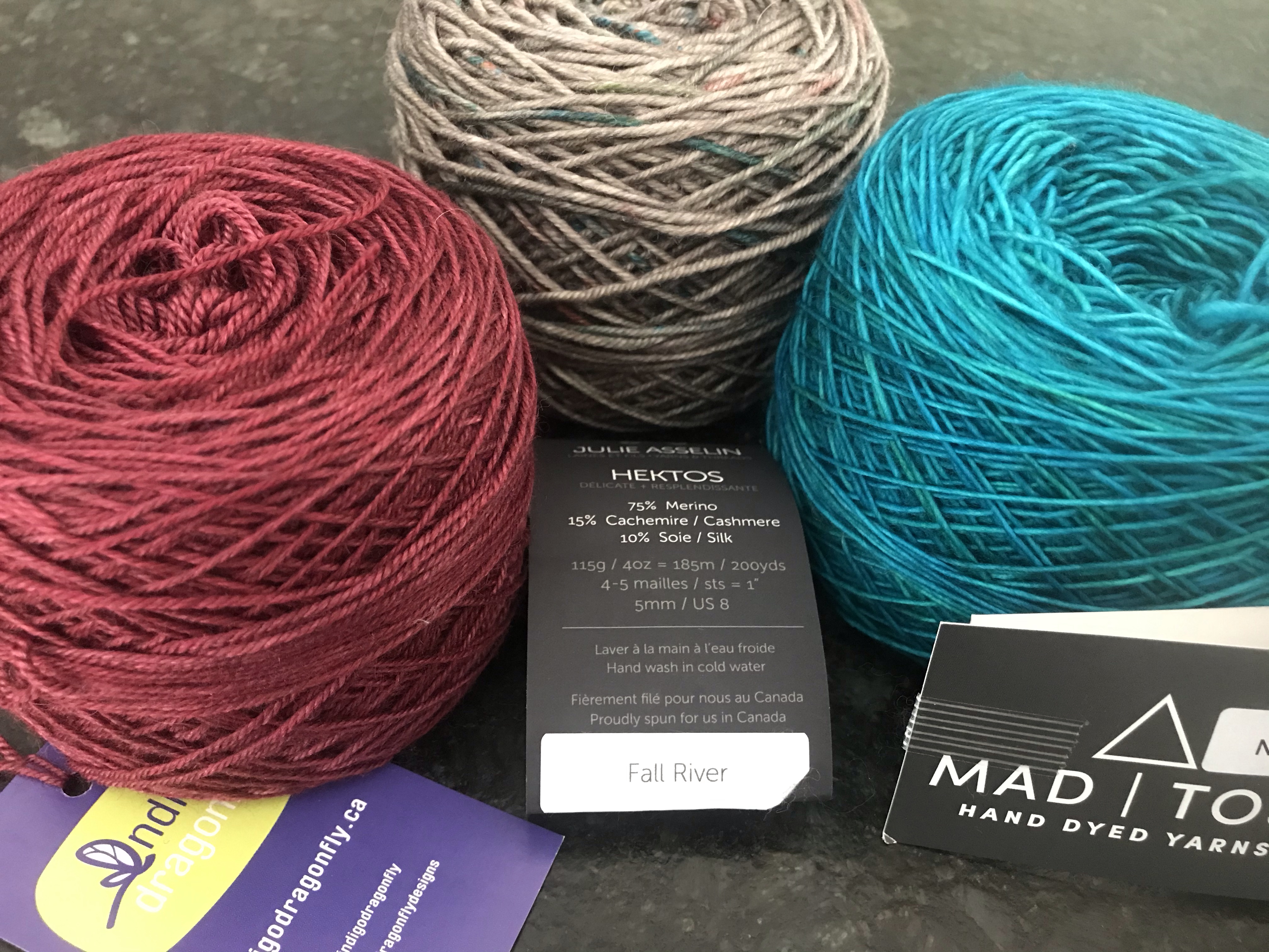 In the week before the surgery, I knit a Miette Shawl. Cast on one for my crochet instructor and got color combo approval during our visit. Finished and cast on a third one for another of my children…colors approved there too, but not yet finished.