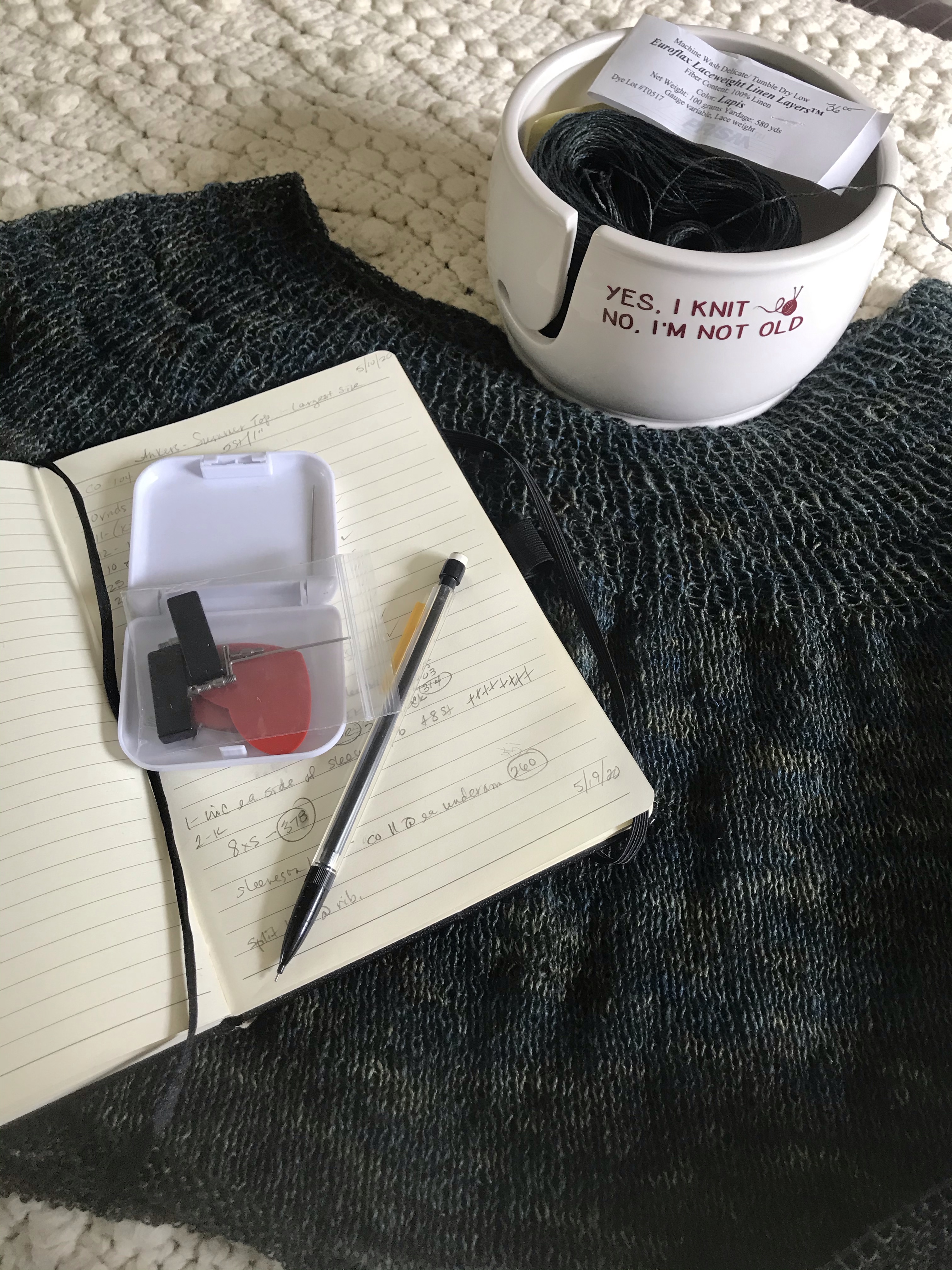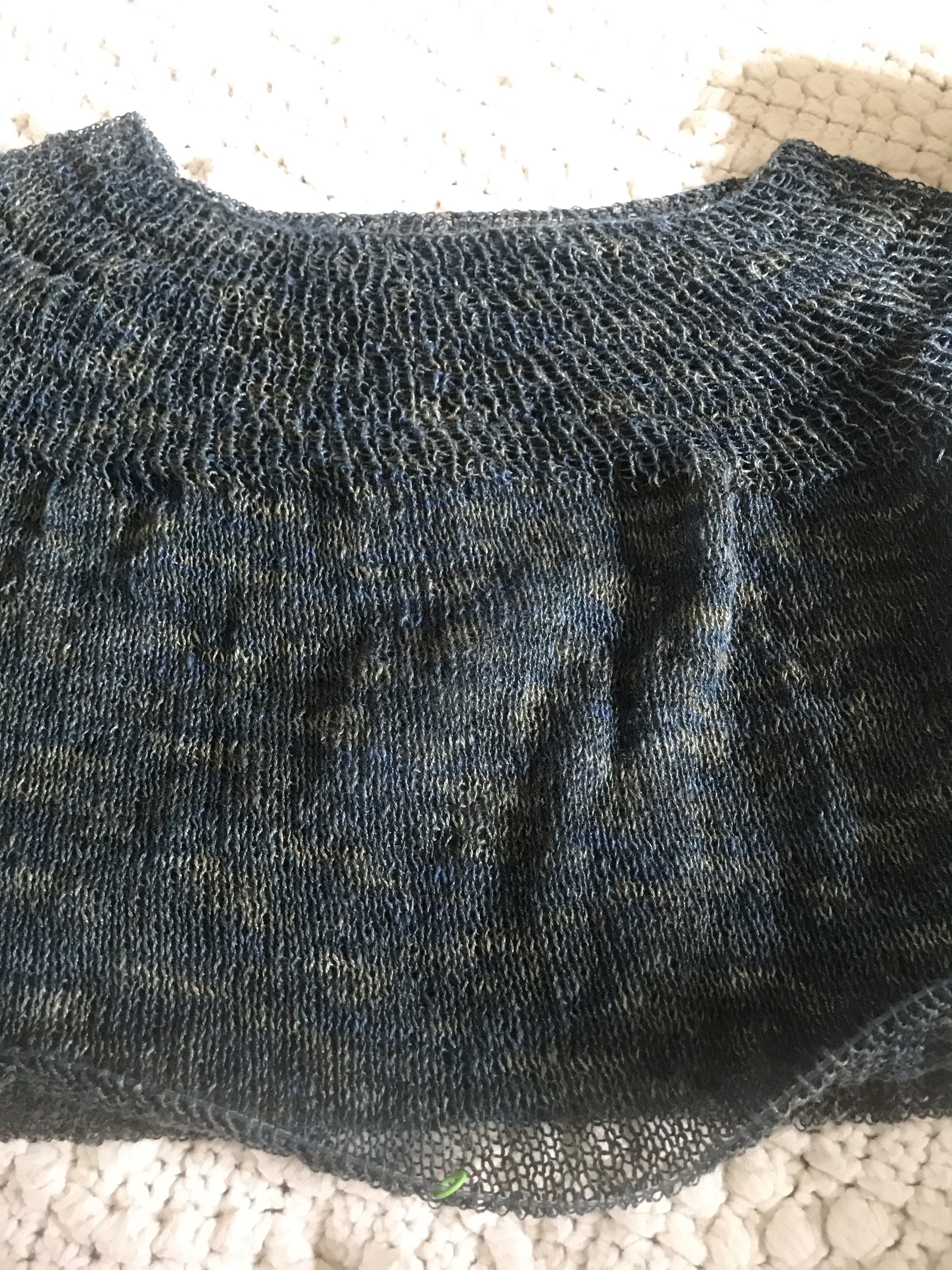 Worked a little on my Ankers Summer Top. Gorgeous Prism Euroflax yarn that has finally found its project! First day in the hotel, my yarn bowl fell and broke… I’m currently on sleeve-island…short-sleeve-island….but, still!