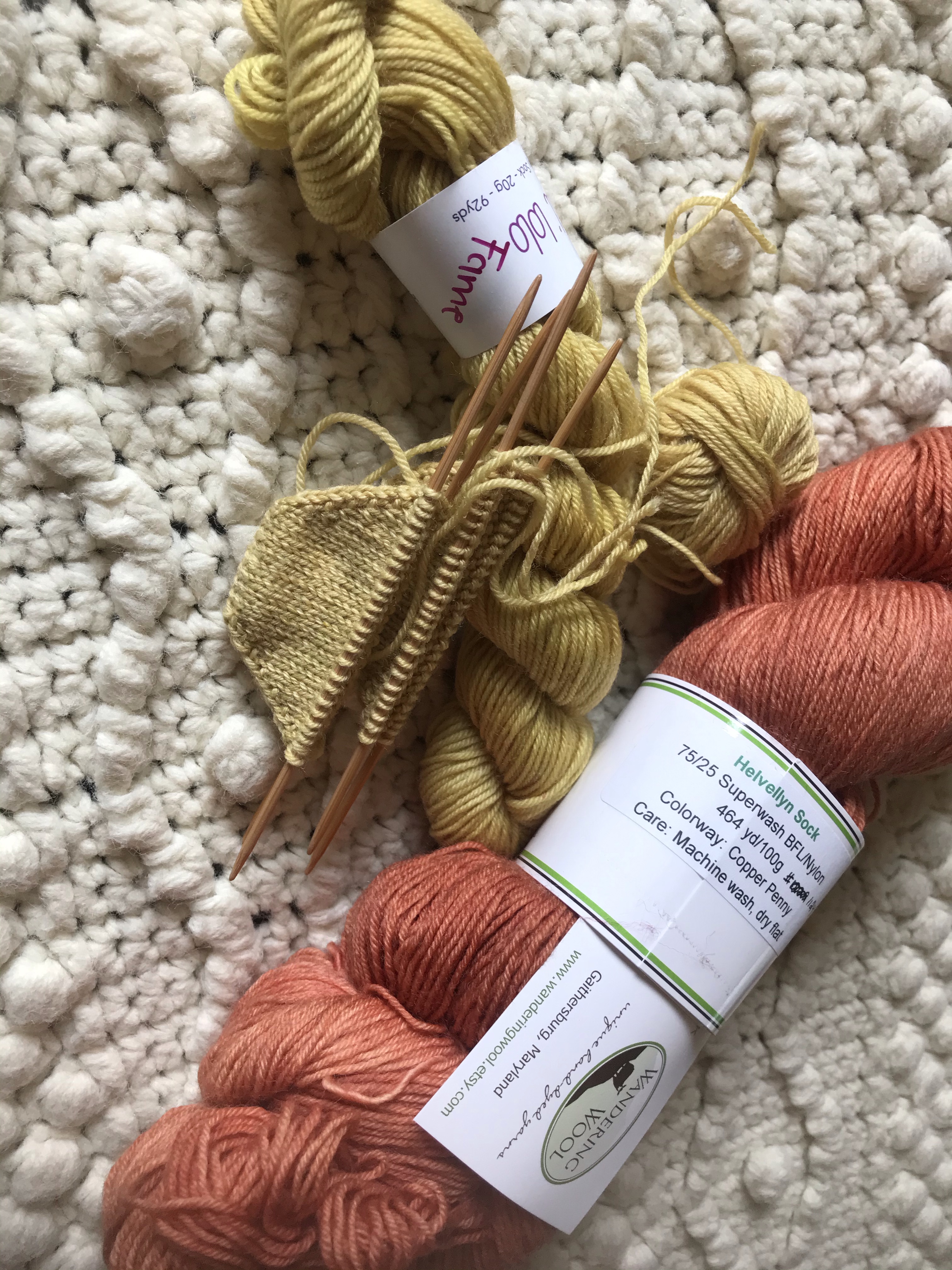 I had a couple socks prepared to knit in case restrictions were relaxed, but no. So not much progress on these.