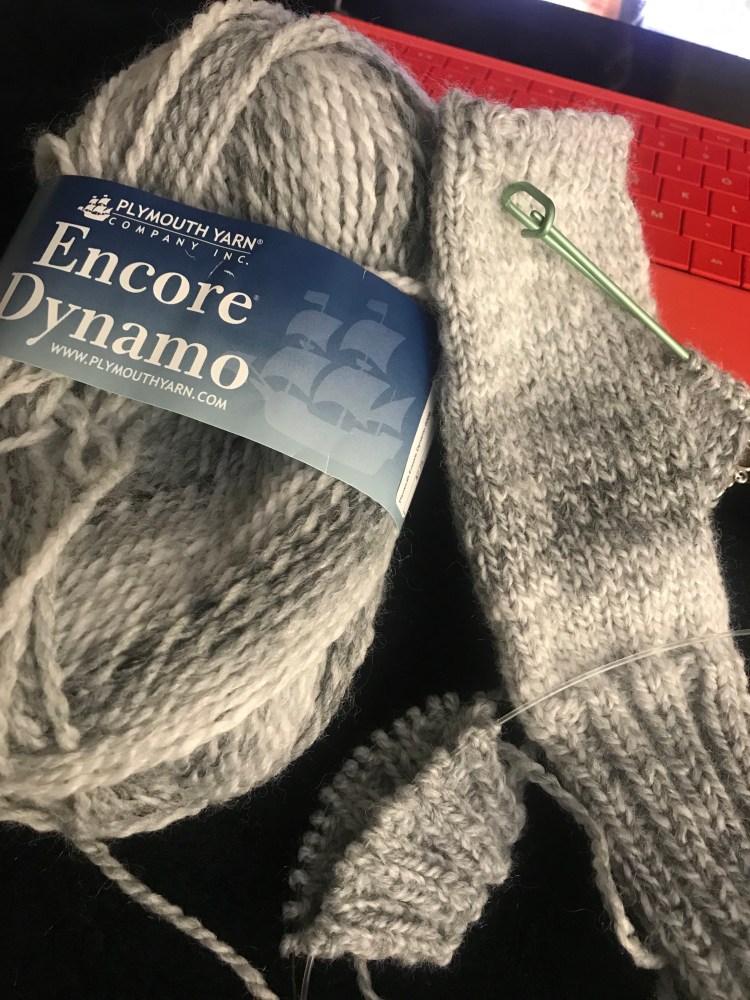 NYC Daughter’s latest request is finger-less mitts. I just happen to have the perfect yarn left over from my best man’s ear warmers….all but the thumb done on the first, cuff started on the second. Project page on Ravelry here… Still working on a pair of socks, kept in the car of course! Blocked my […]