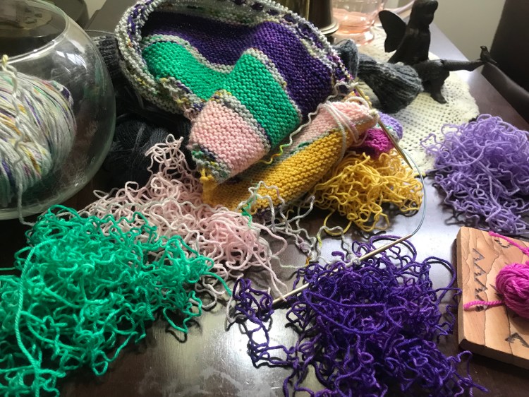 Started the fabulous On The Spice Market shawl on March 4th…section 3 hand me confused until I just started knitting it, wow…! The yarn is Hippo for Mardi Gras 2018, plus the minis that go with it, on 3.25mm needles. I’m not sure I like all the garter stitch that is coming off the needles […]